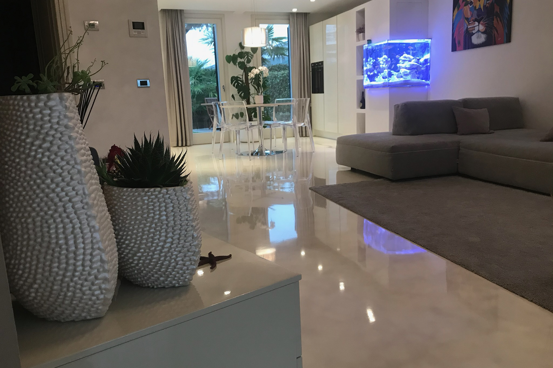 PAVIMENTAZIONE AUTOLIVELLANTE LUCIDA PER APPARTAMENTO IN PROVINCIA DI BERGAMO